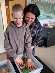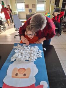 Rozwiązywali ciekawe zagadki na temat świętego Mikołaja. Dopasowywali kształty pierników oraz wspólnie zrobili z waty piękną brodę dla Mikołaja.