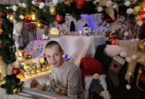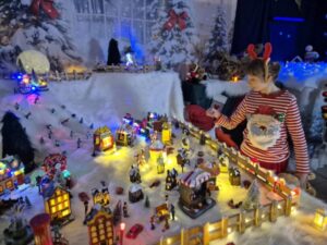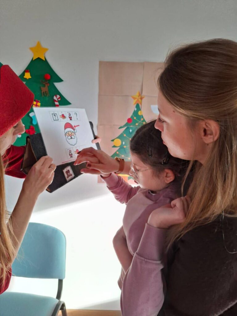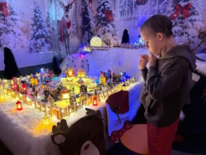 okazje odwiedzić wyjątkowe miejsce – Chatę Mikołaja. Przekraczając jej próg, od razu czuć było prawdziwą magię świąt. Wnętrze chaty było pięknie udekorowane, a blask światełek i ozdób tworzył niezapomnianą atmosferę. Ważnym punktem programu było spotkanie z samym świętym Mikołajem i śnieżynką, którzy osobiście wręczali prezenty dzieciom. Były zdjęcia pamiątkowe, a na zakończenie wizyty uczniowie mogli skosztować pysznego kakao oraz świątecznych ciasteczek. Był to czas pełen radości, wspólnej zabawy i magii, na długo pozostanie w naszej pamięci.